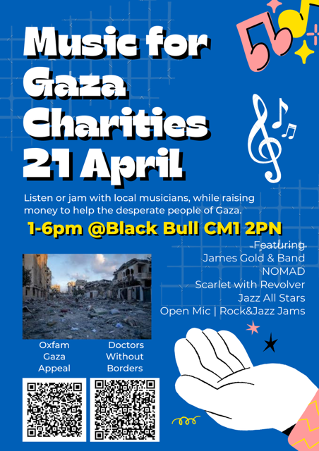 I am organising a gig and jam to raise some money for the Oxfam Gaza appeal and for Doctors Without Borders work in Palestine. It isn’t much, but I feel like I should do something. You don’t need to come to the gig to donate, though it would be great if you do. The link to the JustGiving page is below